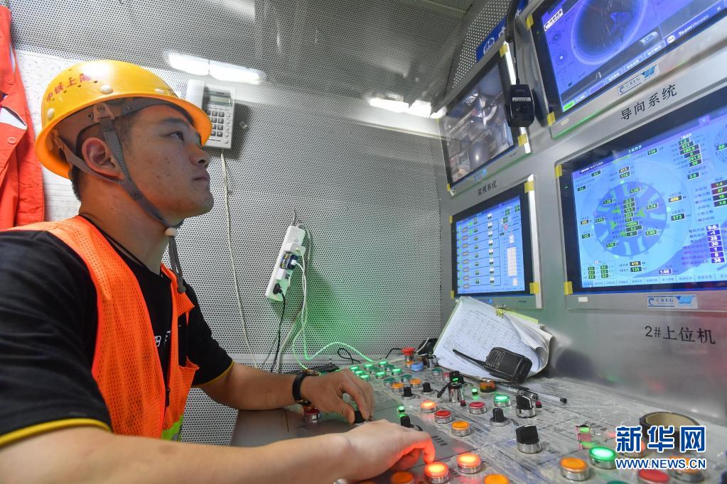 4月28日,施工人员在深圳地铁14号线共建管廊大纵坡隧道操作盾构机掘进。