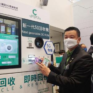 4月28日,“大湾区5G产业联盟”展出一款智能塑料瓶回收机。它通过5G技术,可辨认出塑料瓶的形状,进行自动分类,方便回收处理。