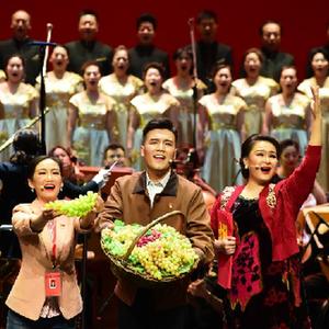 当晚,大型清唱剧《葡萄熟了》在乌鲁木齐的新疆艺术剧院首演。该剧以乡村振兴为主题,讲述了工作队员舍小家、为大家,帮助村民们脱贫致富的故事。