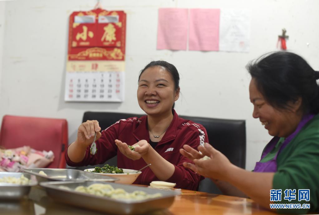 4月28日,叶景芬(左)和妈妈林凤玉在家中包饺子。新华社记者 韩传号 摄
