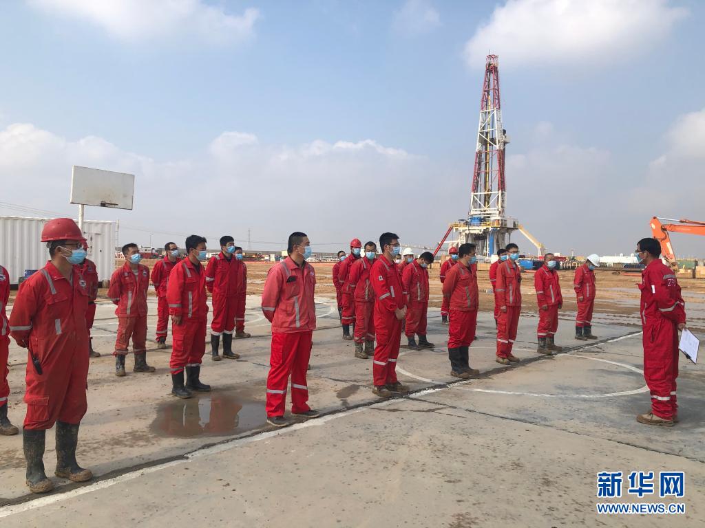 2月7日,在伊拉克济加尔省格拉夫油田,中国员工进行复工安全培训。新华社发