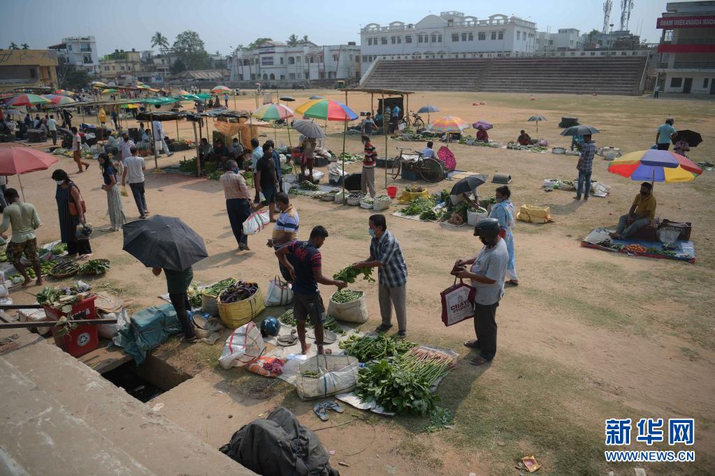为使人们能够更好地保持社交距离,印度阿加尔塔拉一处菜市场从原有的拥挤地点搬至这处开阔的露天空场。