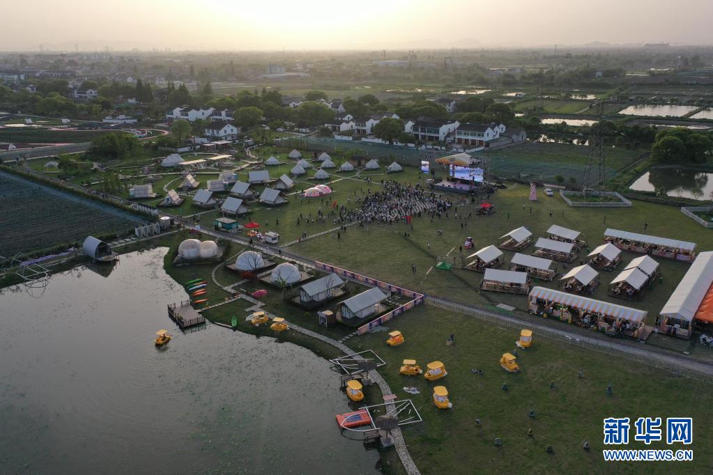 4月29日拍摄的第四届石淙花海龙虾节活动现场(无人机照片)。