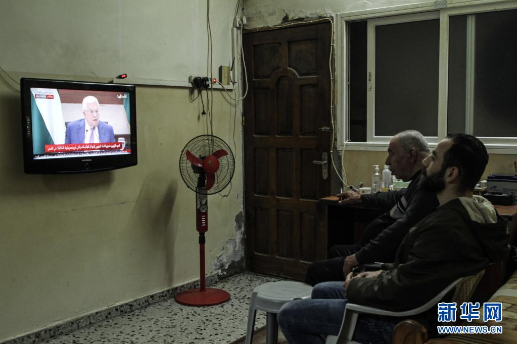 4月29日,巴勒斯坦民众在加沙关注有关巴勒斯坦大选的新闻。新华社发(里泽克 摄)
