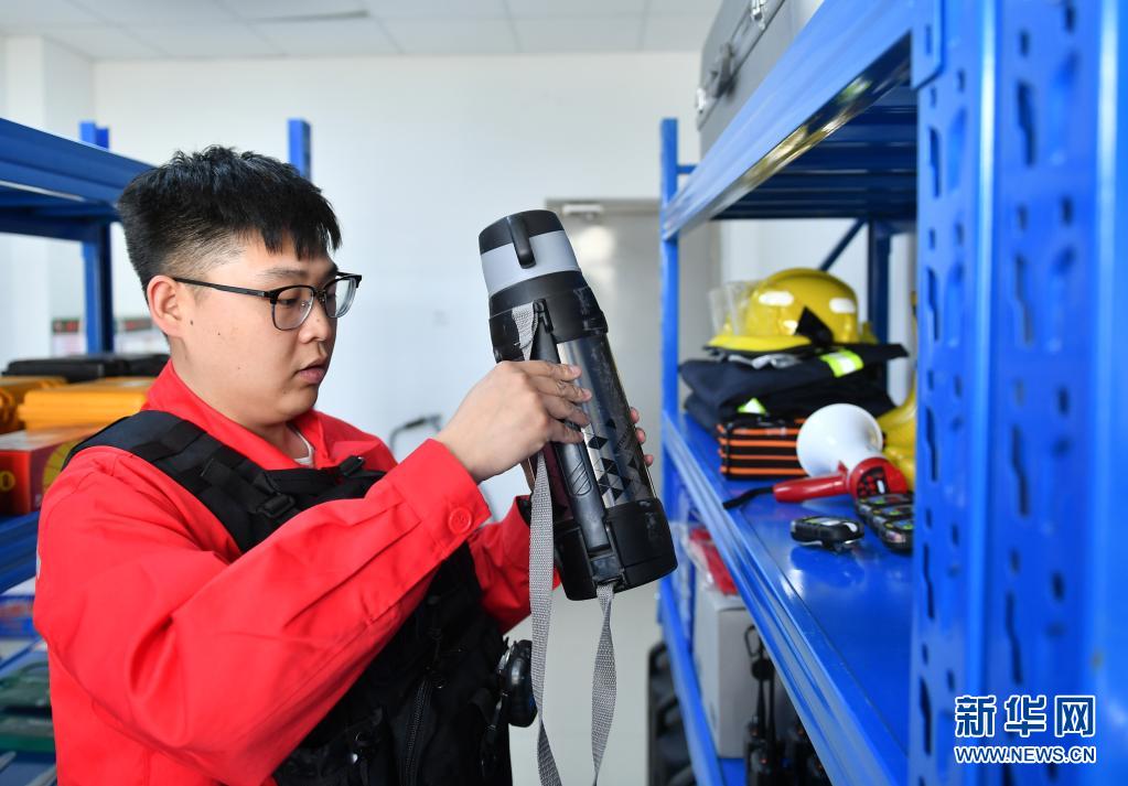 4月28日,巡线队员曹硕进行出发前的准备工作。新华社记者 张博文 摄