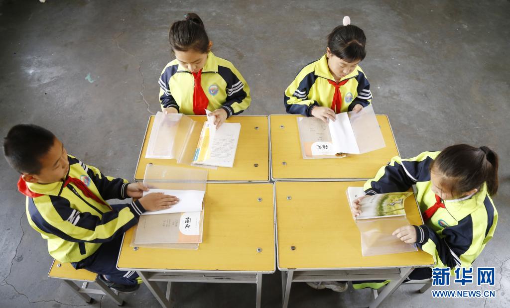 4月30日,邢台市北关街小学学生比赛包书皮。
