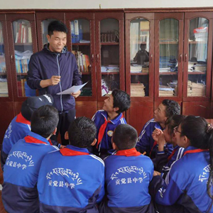陈洪顺给西藏自治区昌都市贡觉县中学的学生上课(2020年4月30日摄)。