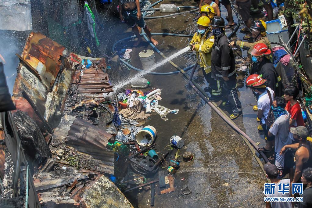 菲律宾马尼拉一居民区发生火灾,约100栋房屋被烧毁,300个当地家庭无家可归。