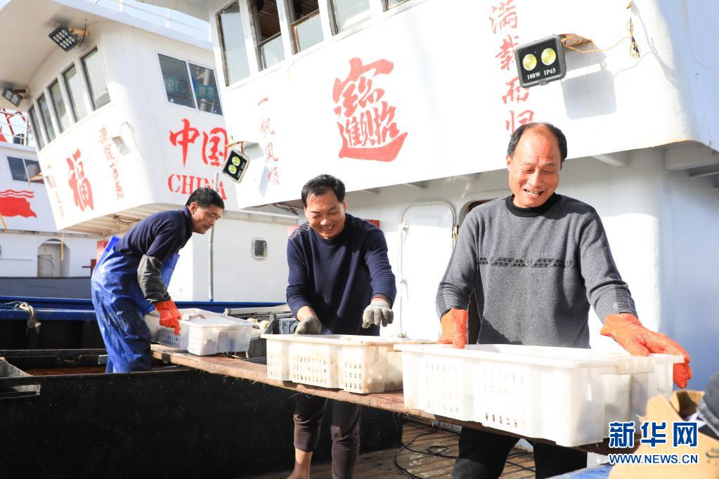 4月30日,在江苏省连云港市赣榆区青口中心渔港,渔民在卸载捕获的最后一批海产品,准备休渔。
