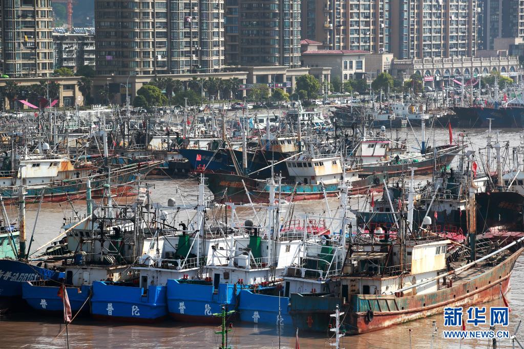 4月30日在浙江省舟山市普陀区沈家门渔港拍摄的归港准备休渔的渔船。