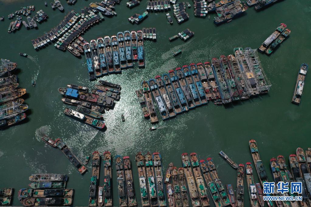 5月1日,渔船停泊在海南三亚崖州中心渔港(无人机照片)。