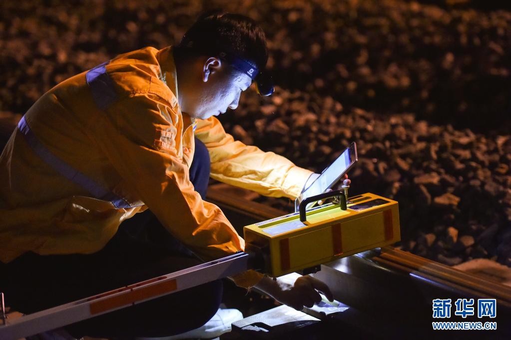 当日凌晨,中国铁路上海局集团有限公司芜湖工务段宣城高铁线桥车间芜湖综合维修工区的线路工利用夜间高铁停运的“天窗期”,对合杭高铁芜湖站内关键道岔、钢轨设备进行精细检测,消除线路设备隐患,保障假期列车安全平稳运行。