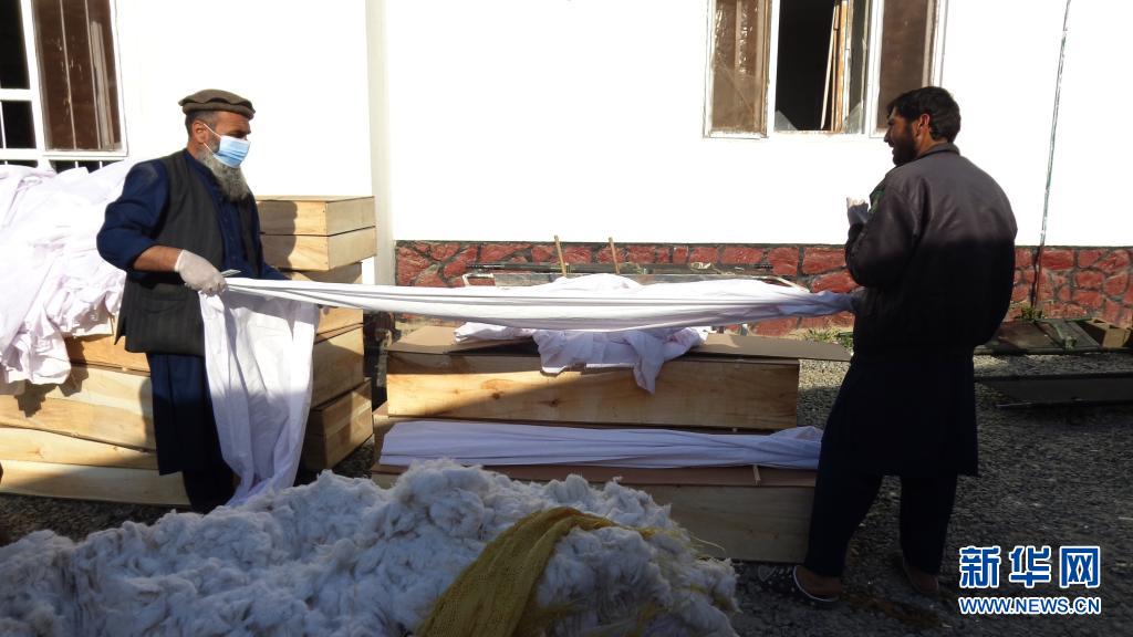 5月1日,人们在阿富汗卢格尔省首府普勒阿拉姆为汽车炸弹袭击遇难者准备棺材。