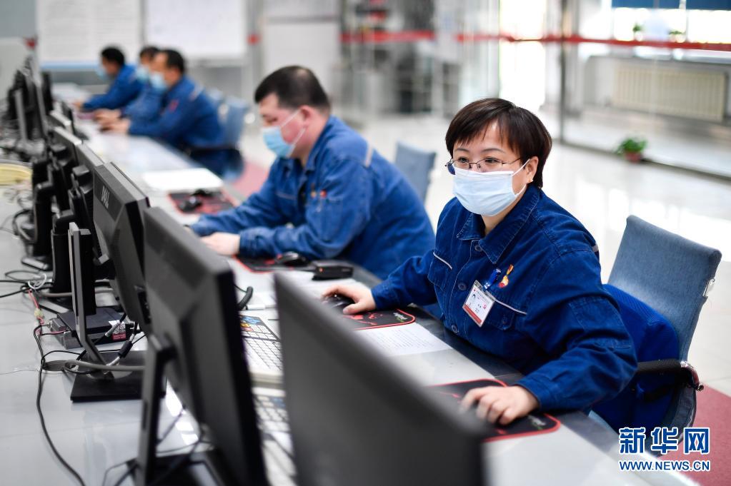 李艳在车间监控中心查看设备运转情况(4月20日摄)。新华社记者 许畅 摄