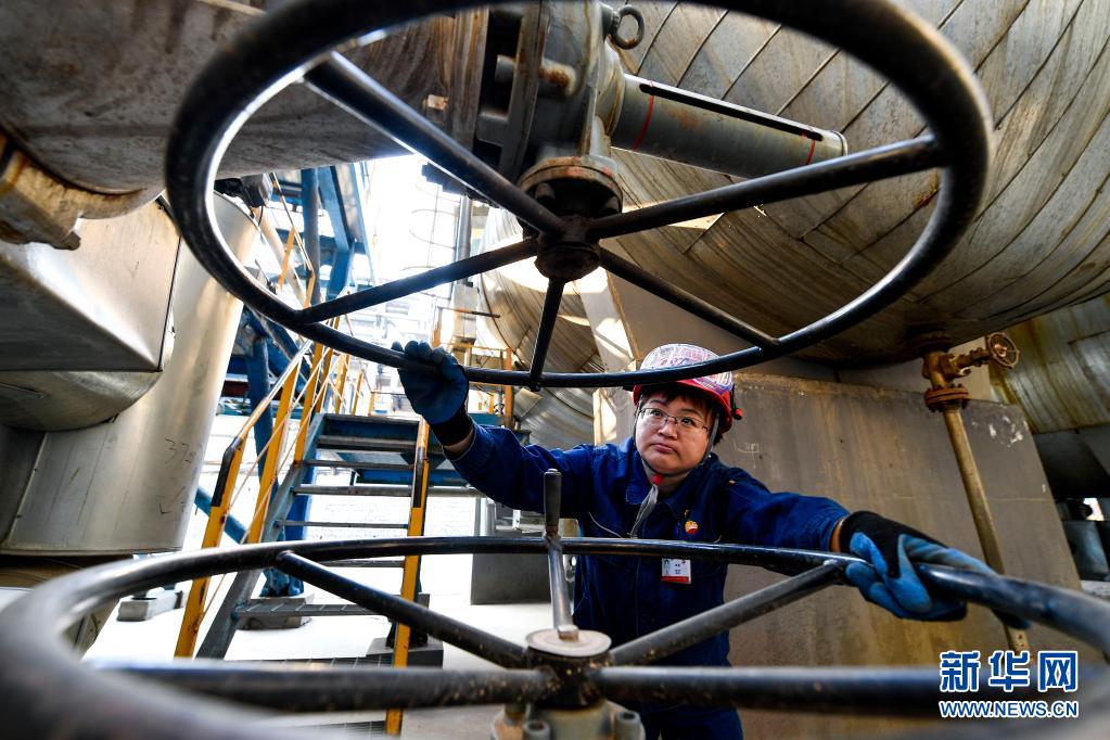 李艳在巡检中操纵一装置的阀门(4月20日摄)。