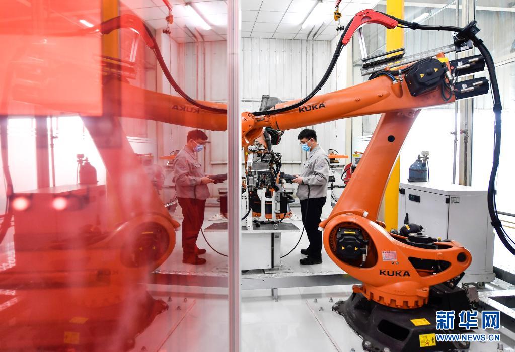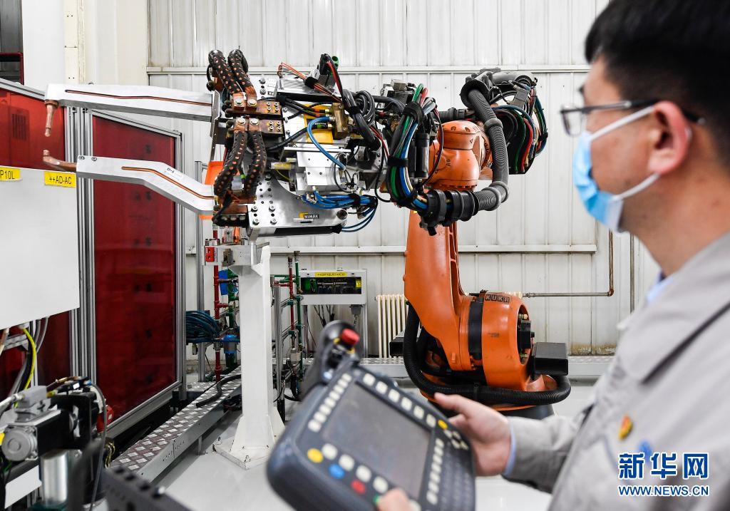 金涛在车间内对焊接机器人进行检测(4月22日摄)。