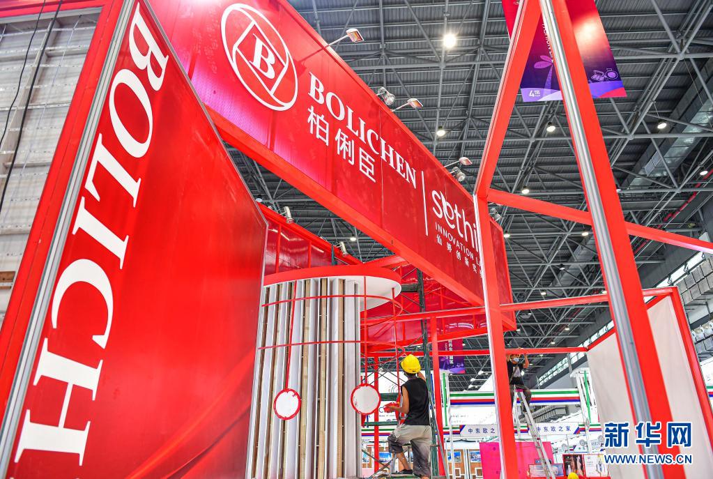 首届中国国际消费品博览会将于2021年5月7日至10日在位于海口的海南国际会展中心举办。目前,工人们正加紧搭建展台,展台搭建工作即将完毕。展台搭建完毕后,参展物品将陆续进入各展馆。