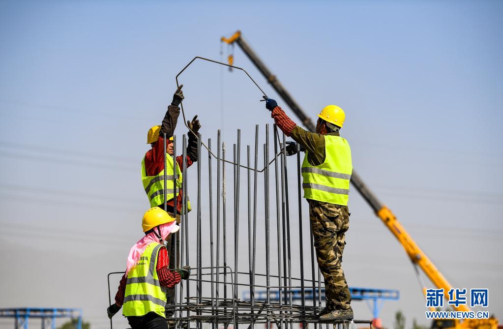 5月1日,宁夏银川市经济技术开发区中环50GW(G12)太阳能级单晶硅材料智慧工厂项目的工人在现场作业。