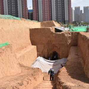 这是编号为M553的西汉中晚期墓葬考古发掘现场(4月30日摄)。
