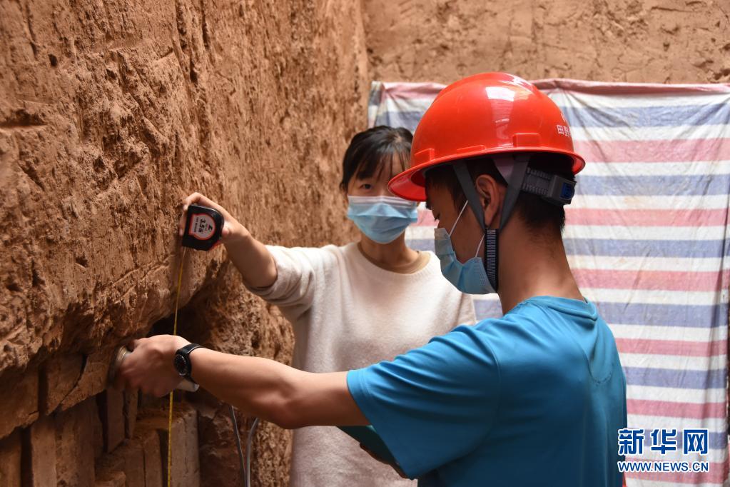 这是考古工作者在西汉中晚期墓葬中进行环境监测(4月30日摄)。