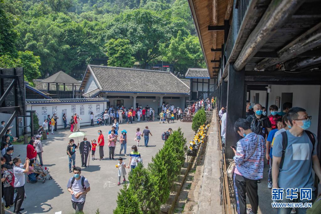 5月1日,游客在重庆渣滓洞看守所旧址景区参观游览。