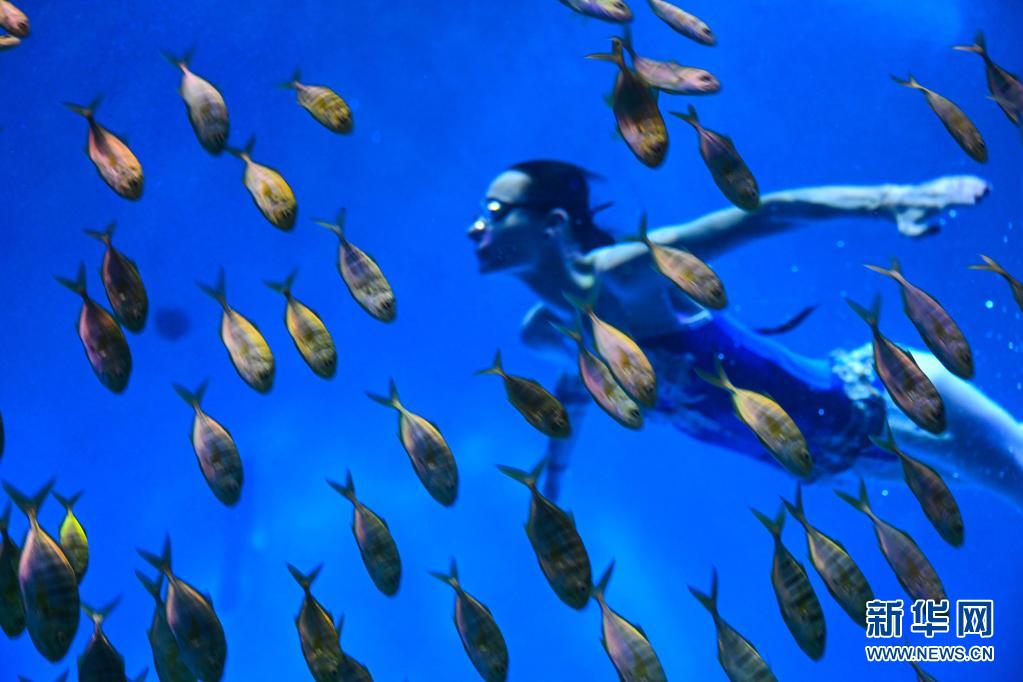 4月27日,乌克兰演员在合肥海洋世界表演水中芭蕾。