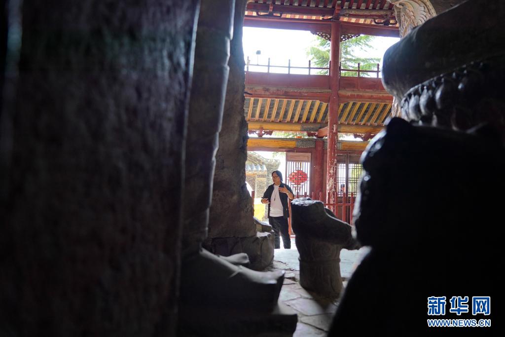 4月29日,赵立春在北响堂山石窟内介绍石窟历史。
