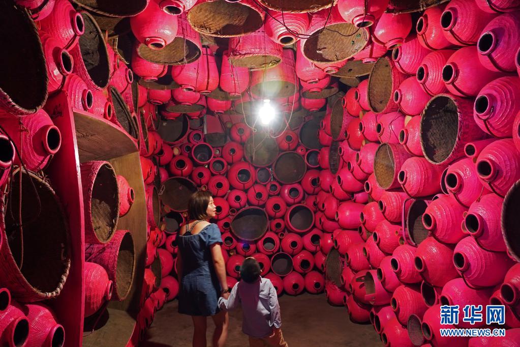 5月1日,参观者在浮梁县寒溪村参观艺术作品《记忆的容器》。
