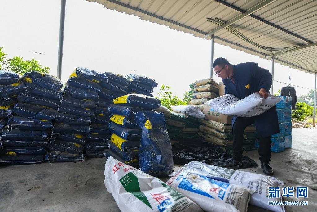 4月30日,在四川省彭山区谢家街道李山村,刘沈厅在搬运农资。