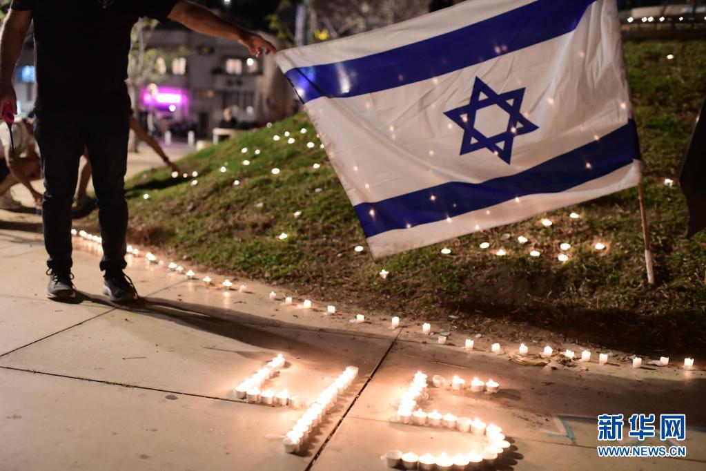 5月1日,民众在以色列特拉维夫市中心点亮蜡烛,悼念该国梅龙山踩踏事故中的45名遇难者。新华社/基尼图片社