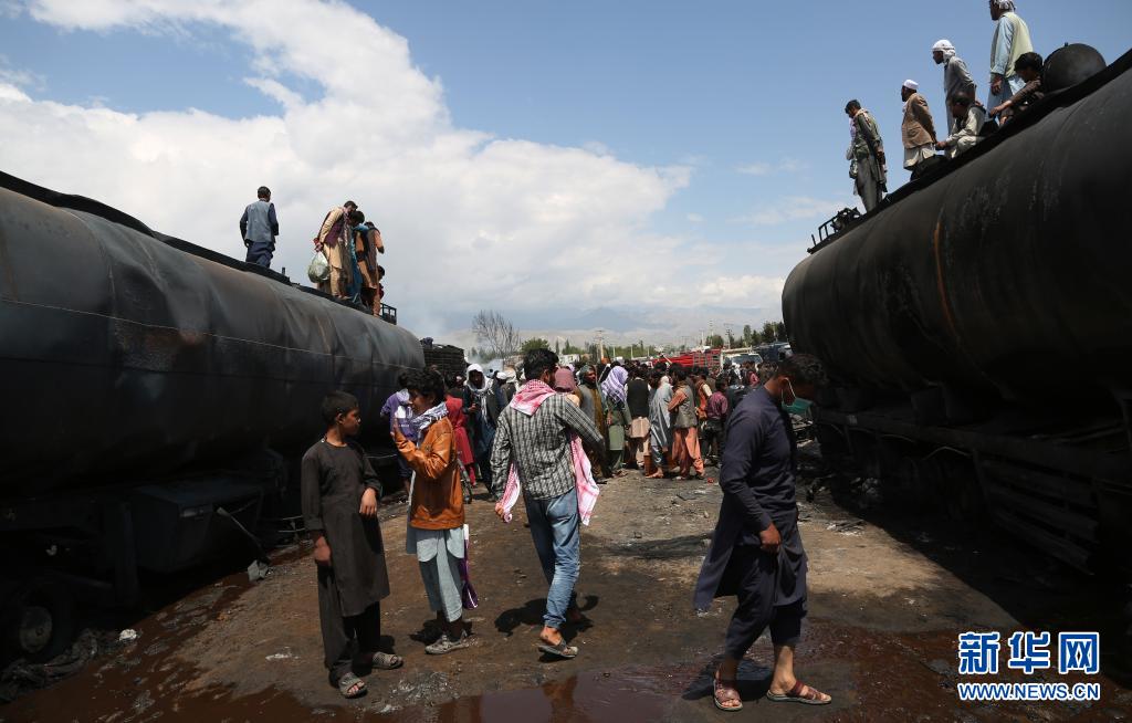 5月2日,人们聚集在阿富汗喀布尔北部的油罐车爆炸现场。