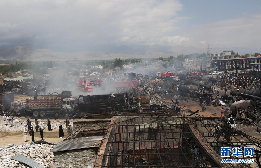 这是5月2日在阿富汗喀布尔北部拍摄的油罐车爆炸现场。