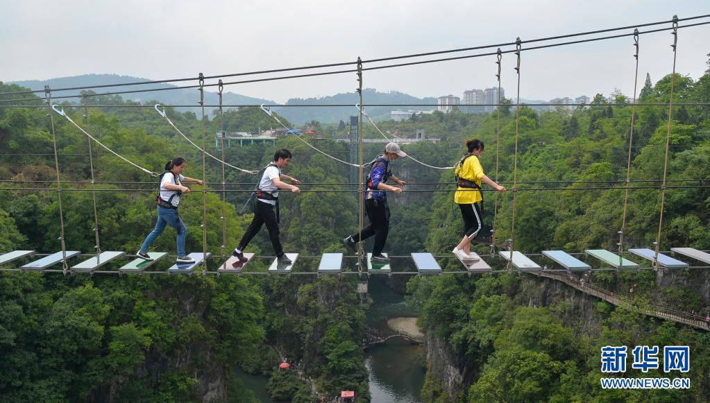 5月2日,游客在贵州省黔南布依族苗族自治州福泉市洒金谷风景名胜区游玩。