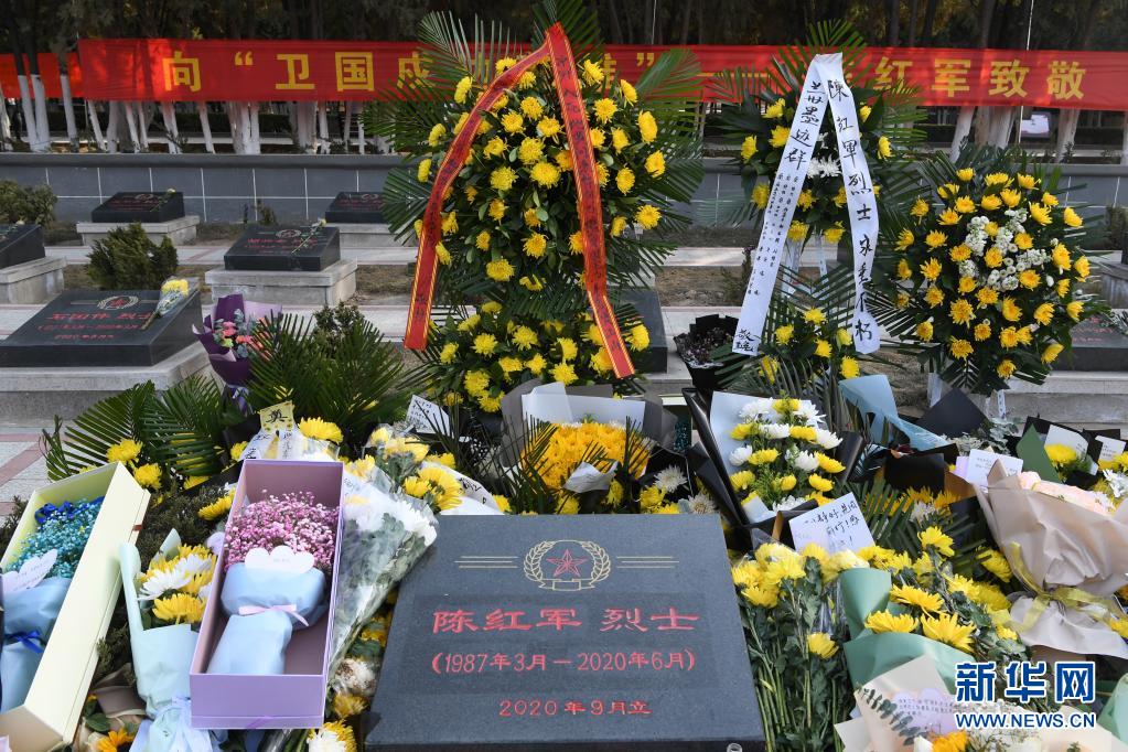 这是2月23日在甘肃省兰州市烈士陵园拍摄的社会各界人士给陈红军烈士敬献的花束、花篮。 新华社记者 范培珅 摄