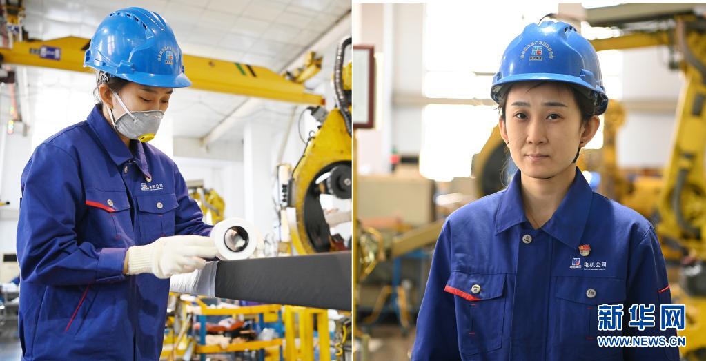 这是一张拼版照片:左图为哈电集团哈尔滨电机厂有限责任公司“80后”绝缘工徐鑫在作业中(4月8日摄);右图为徐鑫在车间内(4月8日摄)。