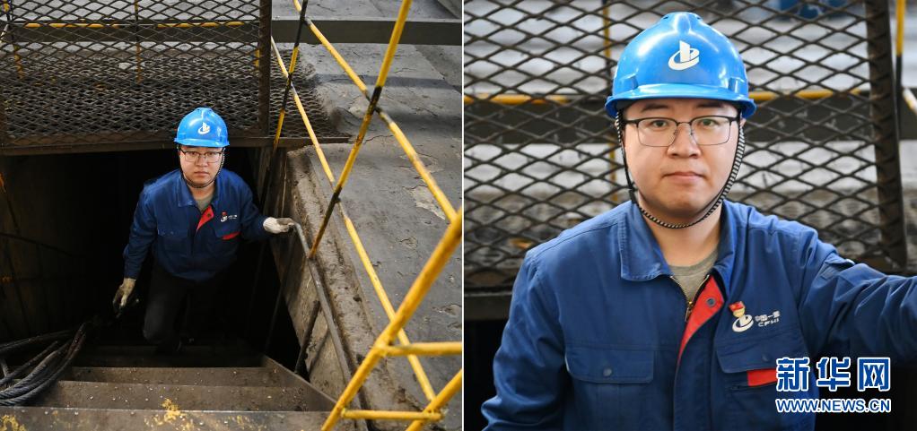 中国一重“90后”技术员戚旭刚完成安全巡查(拼版照片,4月20日摄)。