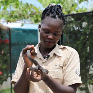 乌干达青年霍莉·奥利维亚·阿凯洛在乌中部布坦巴拉区的CTC野生动物保护中心担任驯养员已近7年。她每天照顾着上百只动物的饮食起居、对它们进行健康监测和训练等。闲暇时,她还去学校和社区演讲,鼓励年轻人保护野生动物并与动物和谐相处。该中心占地31英亩,饲养繁育了狮子、鬣狗、鳄鱼、蝙蝠耳狐、薮猫、非洲金猫、非洲灵猫、蛇、豹龟、非洲灰鹦鹉、变色龙、蜥蜴等10多种珍稀哺乳动物、鸟类和野生爬行动物。