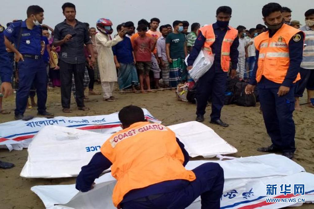 5月3日,在孟加拉国马达里布尔,搜救人员将遇难者遗体放在帕德玛河边。