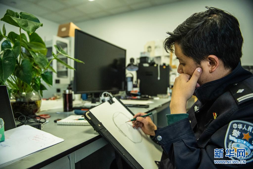 朱允宏在勾勒嫌疑人轮廓(5月2日摄)。新华社记者 陶亮 摄