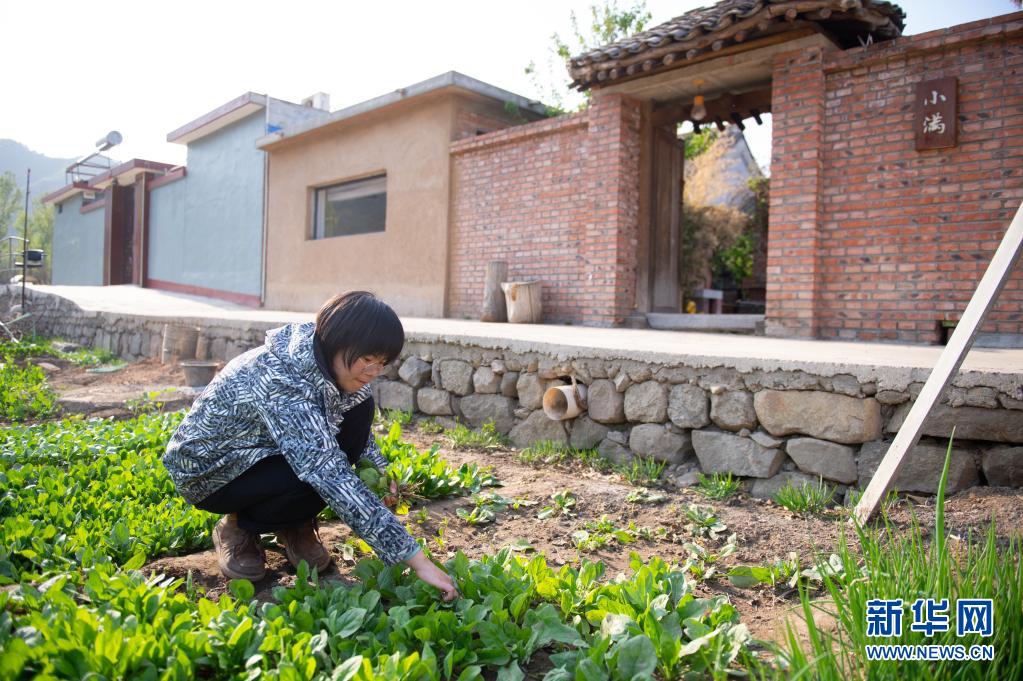 任雪梅在自己经营的民宿外采摘蔬菜(4月20日摄)。新华社记者 陈钟昊 摄