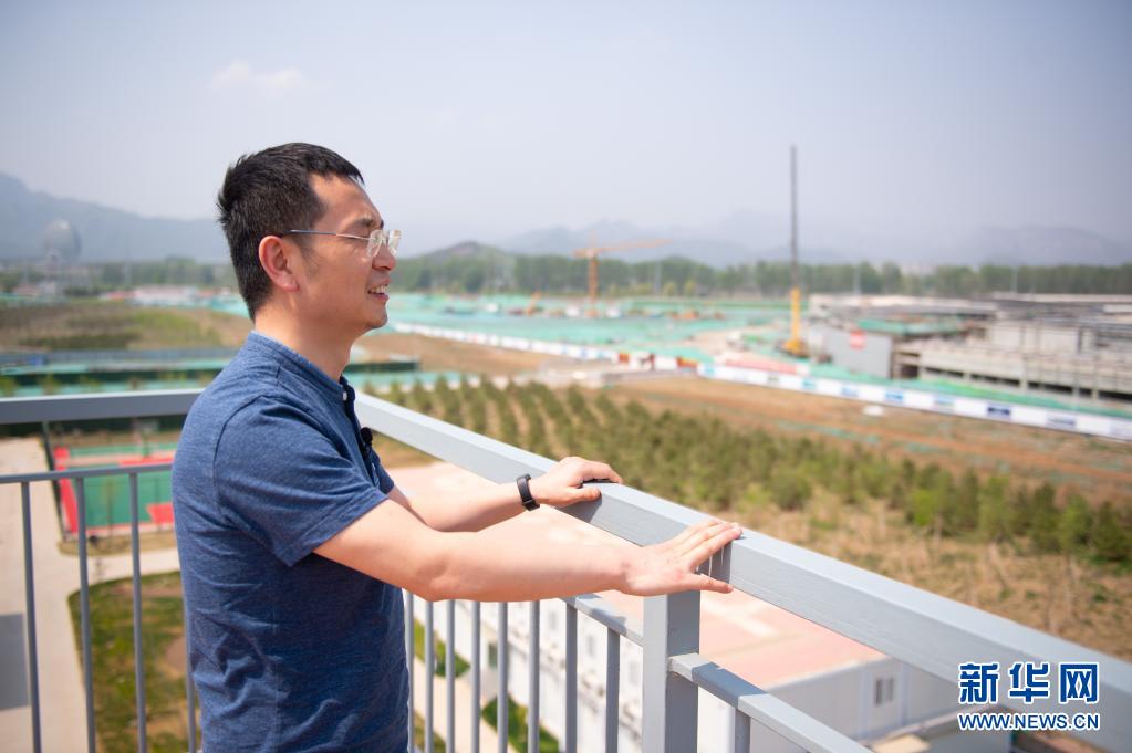 焦毅在高能同步辐射光源项目建设部注视着建设工地(4月20日摄)。新华社记者 陈钟昊 摄