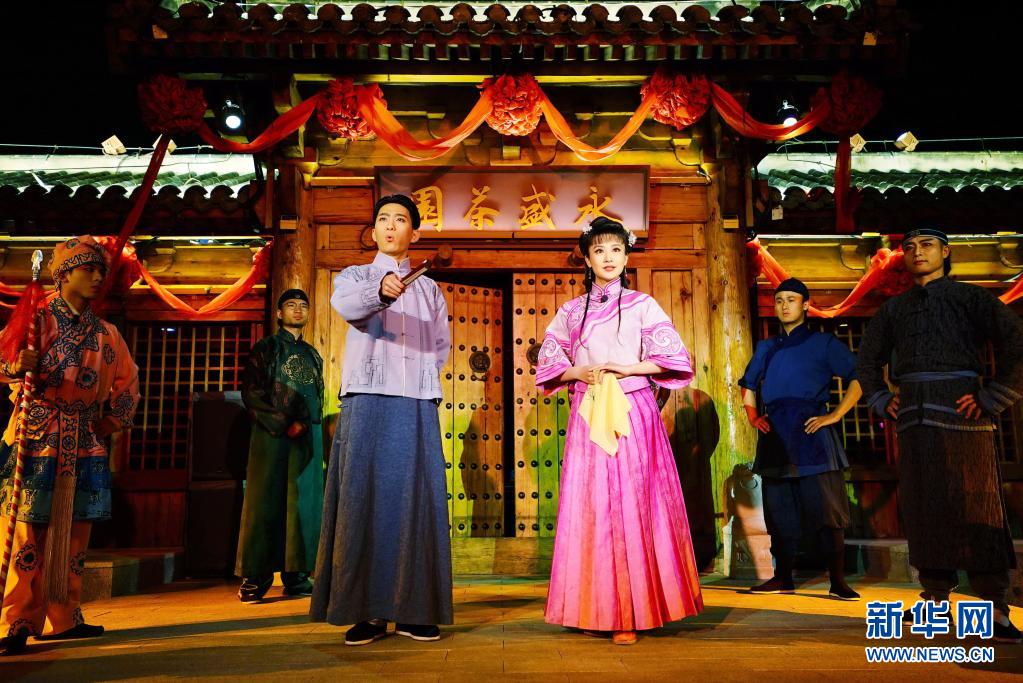 5月3日,演员在唐山市南湖景区为游客表演沉浸式体验剧《那年芳华》。