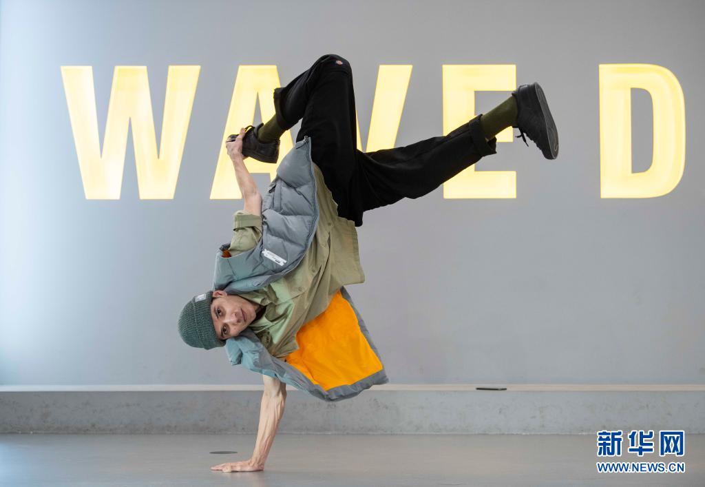 街舞老师西热里·阿不都克然木在位于乌鲁木齐市的街舞工作室练习舞蹈动作(4月21日摄)。