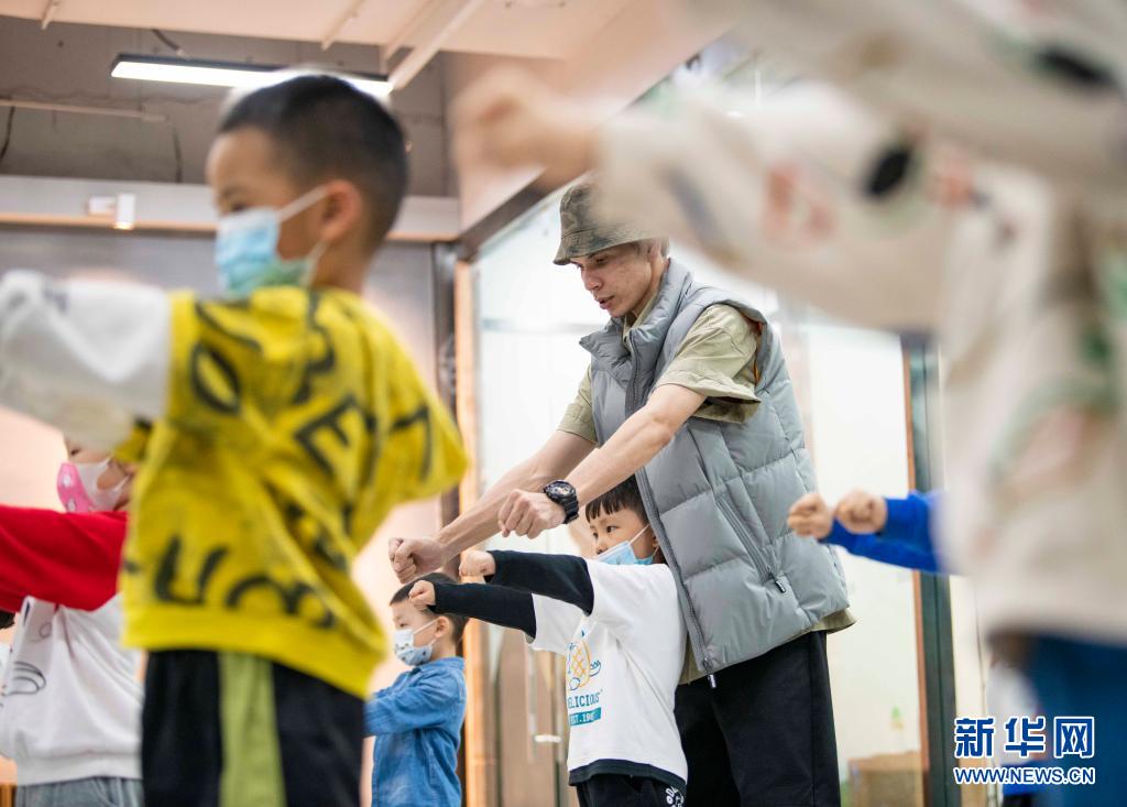 西热里·阿不都克然木上课时为小朋友纠正动作(4月18日摄)。新华社记者 胡虎虎 摄