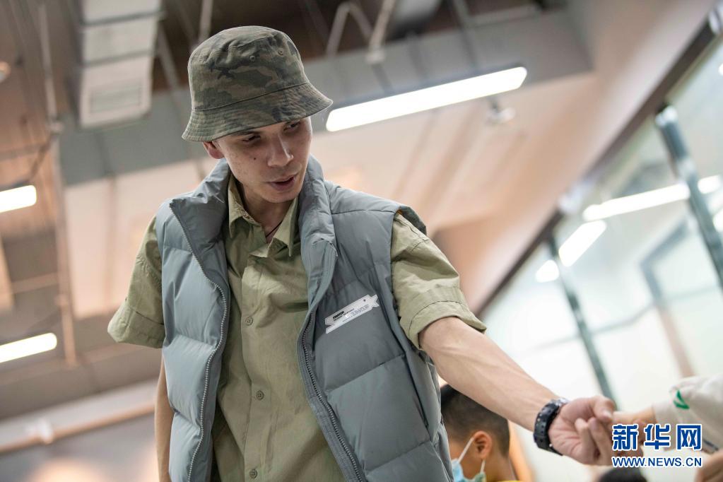 西热里·阿不都克然木上课时帮助小朋友纠正动作(4月18日摄)。新华社记者 胡虎虎 摄