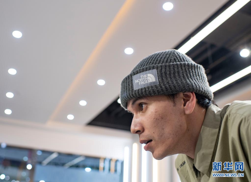 西热里·阿不都克然木与团队老师一起进行每周舞蹈技巧团训(4月21日摄)。新华社记者 胡虎虎 摄