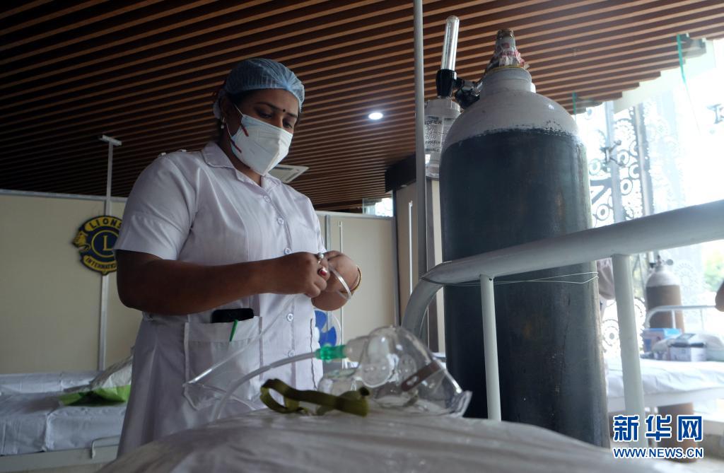 5月3日,医务人员在印度加尔各答为新冠患者准备氧气。