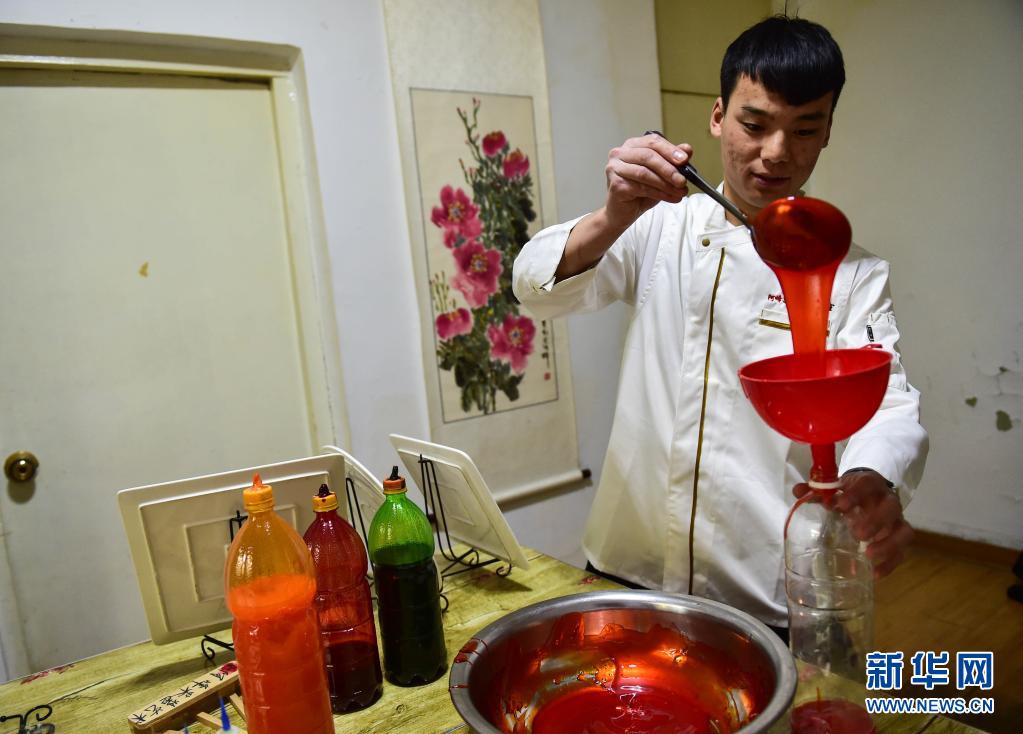 在阿峰果酱艺术工作室,刘旭峰在调制用于作画的果酱(4月28日摄)。新华社记者 柴婷 摄