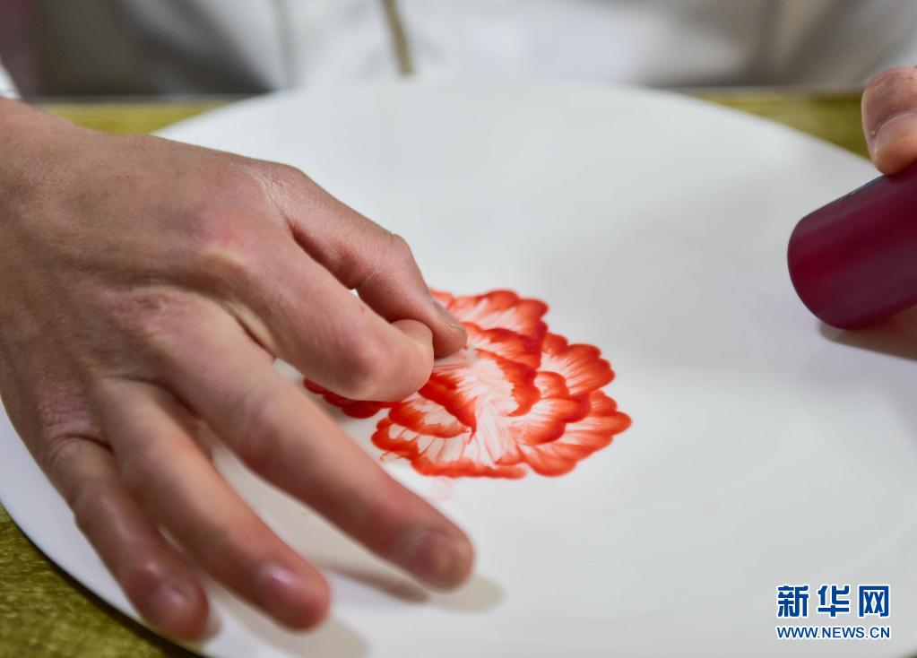 在阿峰果酱艺术工作室,刘旭峰在画果酱画(4月28日摄)。新华社记者 柴婷 摄