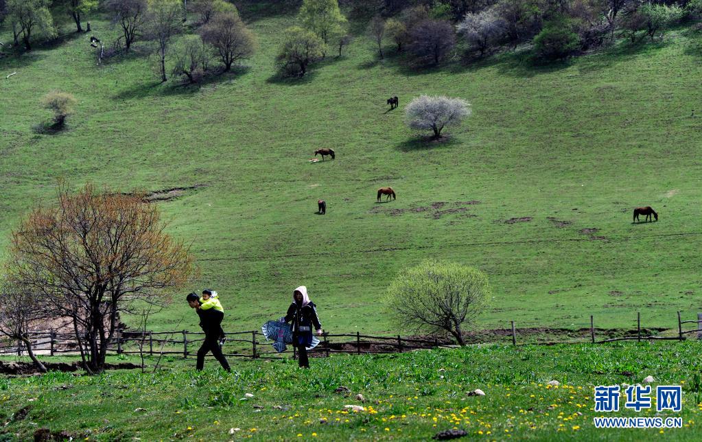 “五一”假期,陕西省宝鸡市的陇县关山草原旅游风景区,绿草茵茵、鲜花遍野。